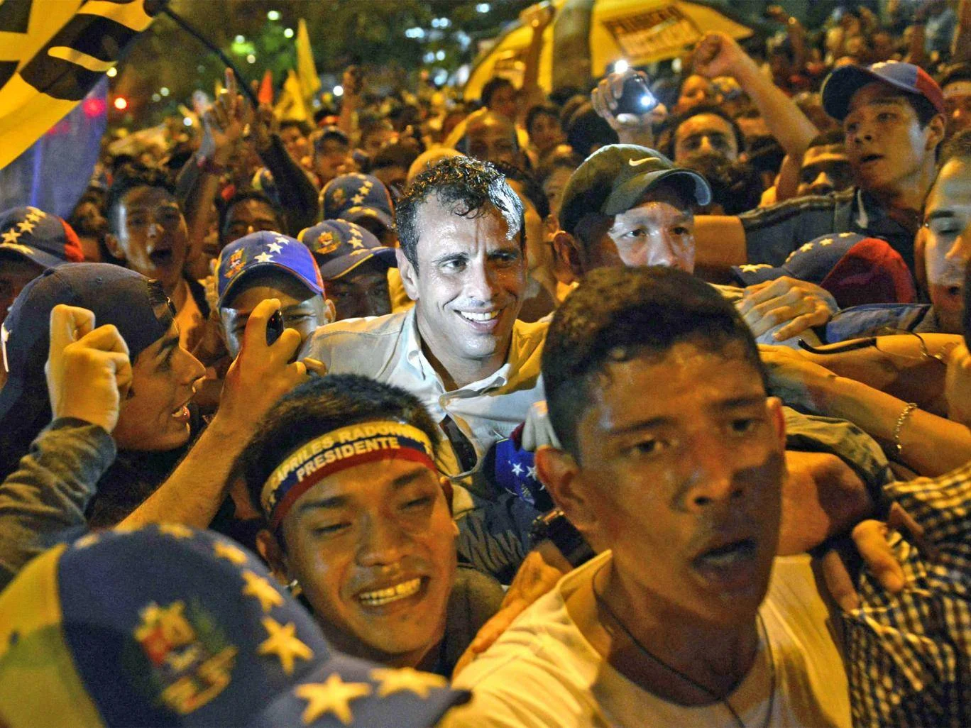 Joining a protest with thousands of his supporters in Caracas on Monday, Mr Capriles shouted: “We want to build a country where everyone can walk in the streets without fear.”